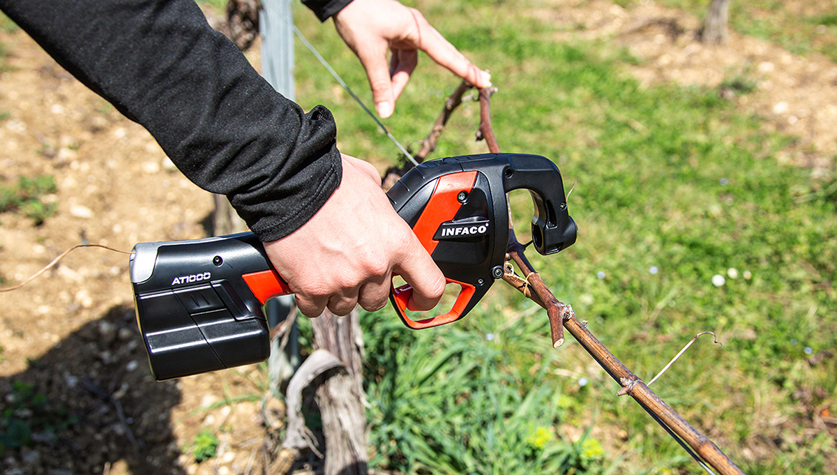 Neben den Bindegeräten erneuerte Tariquet kürzlich auch seine Flotte an Baum-, Reb- und Gartenscheren, die F3020. In beiden Fällen sind die Auswahlkriterien für Armin Grassa "die Robustheit, die Qualität des Materials, die Batterieladung - die bei großen Baustellen sehr wichtig ist - und der Kundendienst".