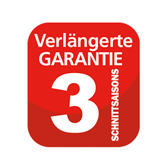 Unter Vorbehalt einer Überprüfung kann die Garantie um bis zu drei Saisons verlängert werden (gilt für Baumscheren und Bindemaschinen).
