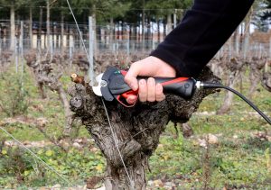 Drahtschneider an der elektrischen Rebschere F3015 in Weinbergen