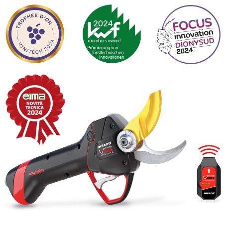 All INFACO F3020 pruning shears feature DSES Wireless (Wireless Supplementary Electronic Safety System) as standard. This device consists of a conductive trigger that provides the link between the user's body and the pruner's electronics. As soon as the tool's cutting head comes into contact with the opposite hand (bare or gloved), the blade reopens instantly: an accident can thus be avoided!