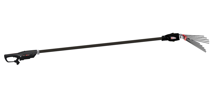The comb works with two types of carbon pole, allowing you to reach the highest olives safely, without effort or the need for a platform. The fixed pole is 2.20 m long, while the telescopic version extends from 2.30 m to 3.30 m. The tool is lightweight, between 3 kg and 3.25 kg depending on the pole used, with an ideal weight distribution for operator comfort.