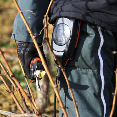 - Pour seulement 810 grammes, notre batterie ultra-compacte est facile à transporter, qu’elle soit accrochée sur votre gilet batterie ou directement à la ceinture, elle se fera oublier lors de l’usage de votre sécateur.