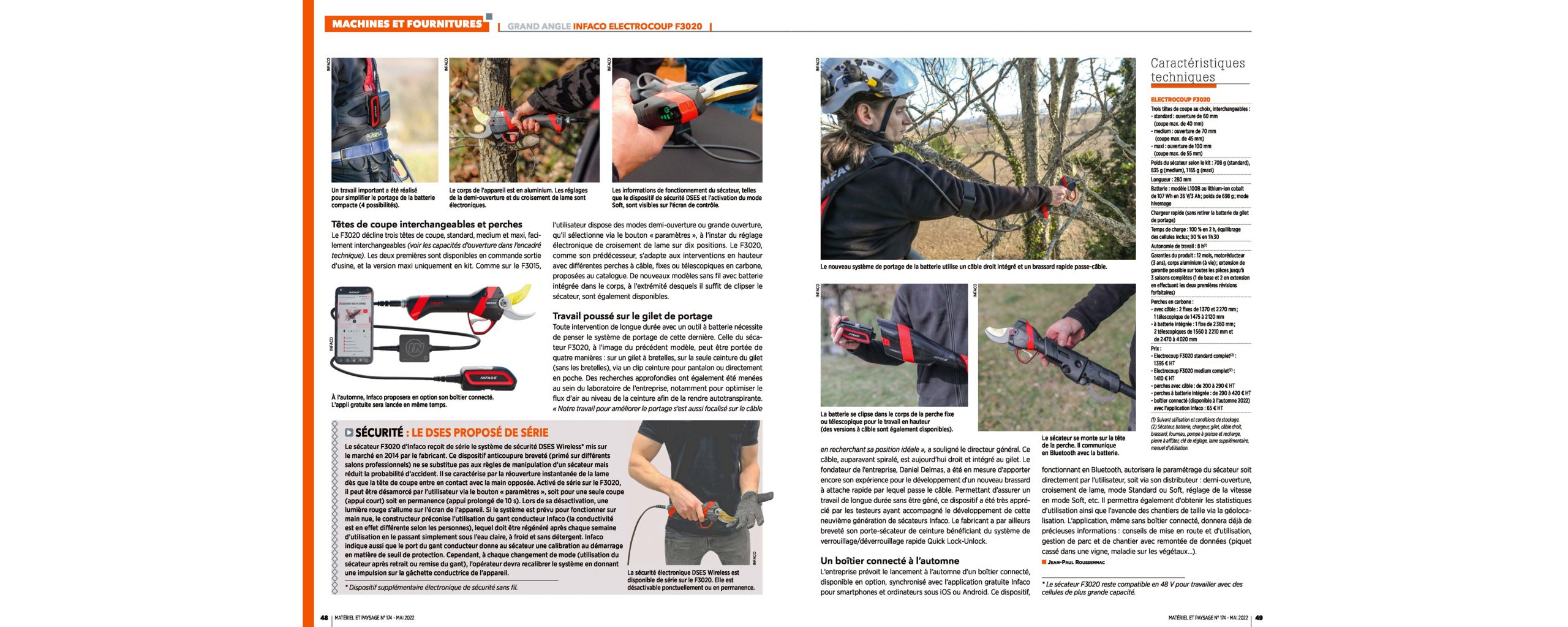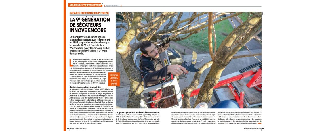 Dans le numéro de mai 2022 de Matériel et Paysage, revue technique des professionnels du paysage, c’est le F3020 qui est à l’honneur !