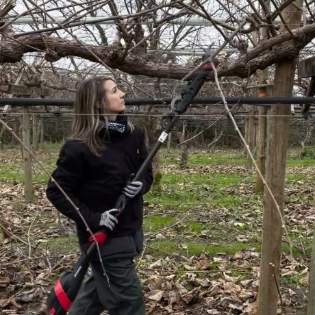 Na equipa de poda da Agnès, cada um optou pela ferramenta que melhor lhe convém; utilizam mesmo uma tesoura de poda montada numa vara, cuja bateria integrada lhes dá uma maior liberdade de movimentos para desembaraçar e retirar os ramos velhos.